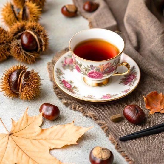 ほっこりとした香ばしい栗の香り。コクがあり渋み少なくまろやかな紅茶。体がぽかぽかと温まり、ミルクティーにもよく合います。お客様のリクエストで再販いたしました。